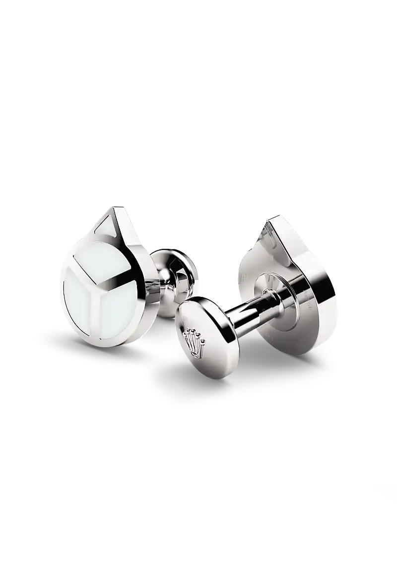 這款勞力士袖扣以18K白色黃金打造,設計呼應配備Chromalight夜光顯示的勞力士專業錶款時針。
