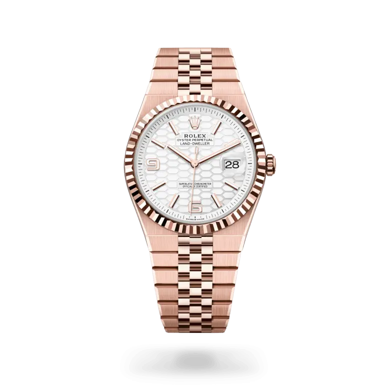 勞力士三角坑紋為品牌腕錶的特色。最初,蠔式腕錶外圈上的三角坑紋具備實際用途,有助將外圈旋緊固定在錶殼上,確保腕錶的防水性能。而底蓋上可見的坑紋設計亦出於同樣目的,並以特定的勞力士工具旋緊於錶殼。及後,三角坑紋演變為一項美學設計元素,堪為勞力士的經典特色。時至今日,三角坑紋成為品牌腕錶的特色,這款Land-Dweller 40的外圈以金製成。