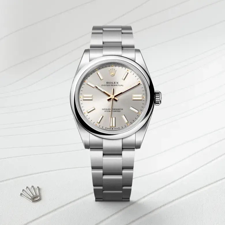 蠔式系列的許多錶面款式均採用太陽光線效果,折射出淡雅光澤。這種效果需要超卓的刷光技術,打造從錶面中央往外擴展的刻紋。光線沿刻紋分散,營造出隱約而獨特的效果,隨著手腕擺動展示不同光澤。完成太陽光線效果的工序後,便會通過物理氣相沉積法或電鍍技術,為錶面添上色彩,最後再以油光漆修飾。